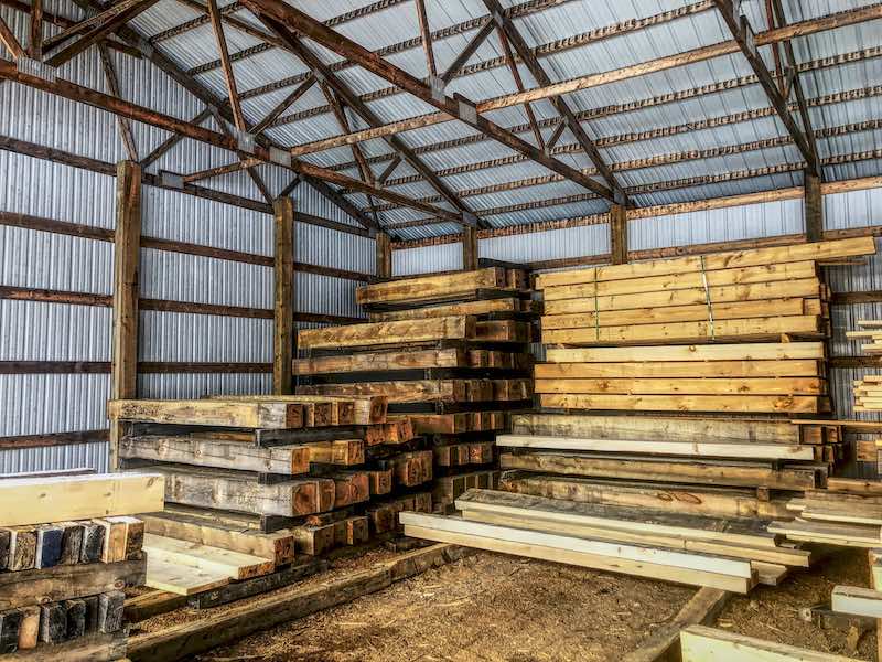 When you purchase our white pine timbers you can be assured of receiving the best quality timbers on the market. We carefully select our timbers in the forest before the tree is cut off the stump. We then saw all of our timbers oversized by 1/2 inch, and then dry them for as much as four years in our 32-foot by 126-foot drying shed. On a standard 3-year rotation, our timbers slowly air dry to ensure a better product.